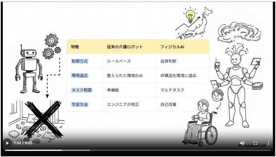 しかし、フィジカルAIは自分で周囲の状況を確認して判断でき、想定外のことが起こっても対応可能なことから、利用者のQOL向上と介護職員の働きやすさの改善を両方実現できる可能性が高いのです。